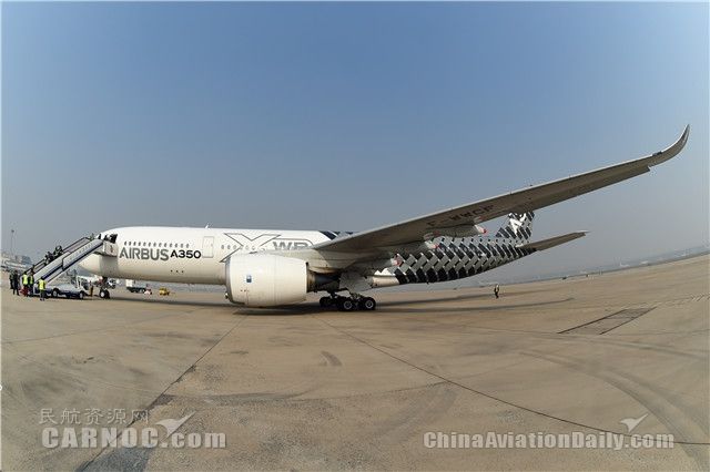 11月2日一架身披碳纖維特殊涂裝的空客A350-900測試飛機飛抵北京首都國際機場,并在11月3日進行展示。A350是目前世界上最先進的遠程寬體飛機。北京是空客A350中國巡演活動的第三站,之前這架生產序列號為MSN2的測試飛機已經訪問了珠海和??冢酉聛硭€將飛抵上海、廣州和成都進行靜態和飛行展示。